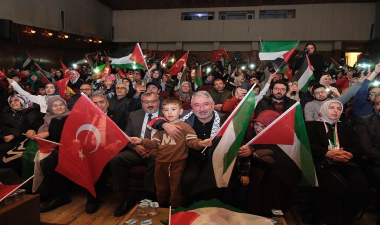 Belediye Başkanı Dr. Halil İbrahim Aşgın program sonrasında geceye katkı veren sanatçı Aykut Kuşkaya ve ekibine çiçek takdim etti. Filistin’de yaşanan zulümlerin Müslümanların zaferiyle son bulacağını söyleyen Başkan Aşgın “Tarih Nemrutları, Ebu Cehilleri, Firavunları değil Hz. Musa’nın, Hz. İbrahim’in, Hz. Muhammed’in zaferini yazmıştır. Şimdi Kudüs’te tarih yeniden yazılıyor. Tarih yine İsrail’in, Siyonistlerin, bebek katillerinin zaferini değil, Müslümanların, mazlumun yanında olanların, inananların zaferini yazacak. Yeter ki biz Firavunların karşısında Musa gibi, Nemrutların karşısında İbrahim gibi duralım. Allah’ın izniyle nasıl ki Kızıldeniz Firavun’a mezar olmuşsa Akdeniz de İsrail’e, Siyonizm’e mezar olacak. Zafer Müslümanların ve inananların olacak” dedi.