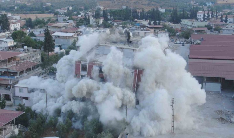 Asrın felaketinin binlerce binayı yıktığı ve ağır hasar oluşturduğu Hatay’da ekiplerin yıkım ve enkaz kaldırma çalışmaları sürüyor. Hassa ilçesi Yeni Mahalle’de bulunan Şehit Adem Kurt Sokağı’ndaki 7 katlı ağır hasarlı bina da dinamitle patlatılarak yıkıldı. Bölge halkı, yıkımı meraklı gözlerle izledi. Ağır hasarlı binanın yanında 2 katlı evi bulunan Hatice Duman, binanın sorunsuz bir şekilde yıkılmasıyla rahat nefes aldı.