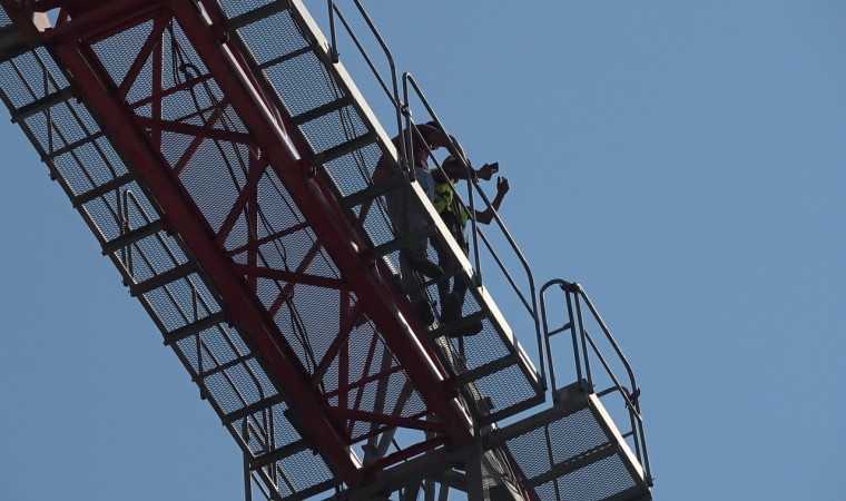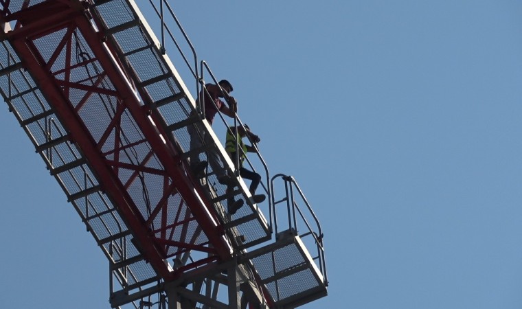 Yaklaşık 1 buçuk saat boyunca kule vincin üstünde duran işçileri polis ekipleri ikna etti.