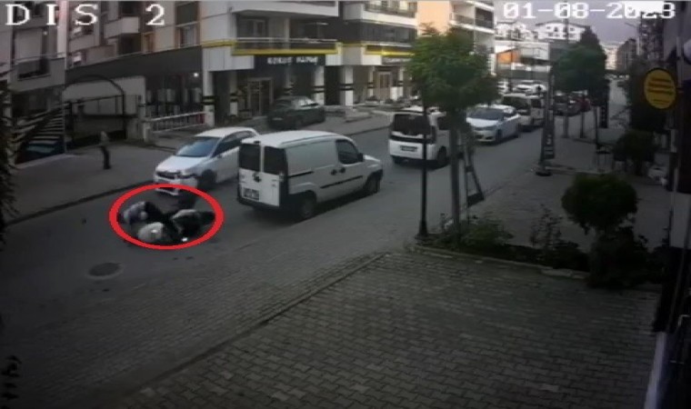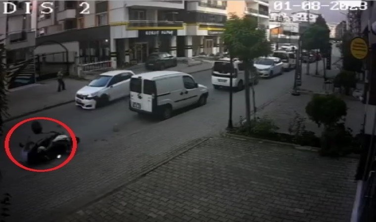 Olay, Bursa’nın merkez Yıldırım ilçesi Millet Mahallesi’nde meydana geldi. Kaldırımdan ilerleyen araç sürücüsü, aynasını kullanmadan yola inmeye çalışınca, yolda seyir halindeki motosikletliye çarptı. Çarpma sonrası motosiklet sürücüsü yere düşerken, diğer sürücü ise aracıyla olay yerinden kaçtı.