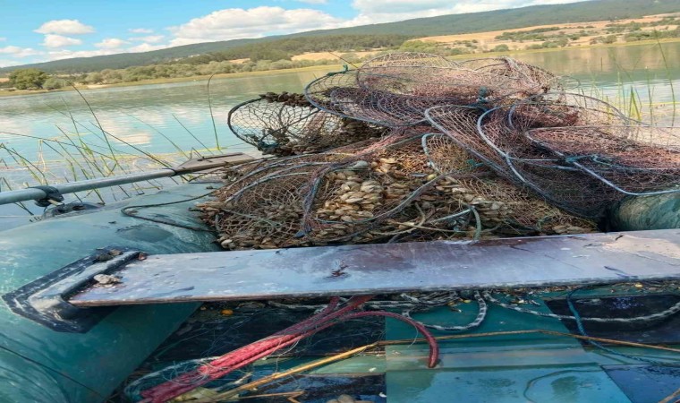 Ekipler aynı göletten 150 adet av sepeti toplamıştı