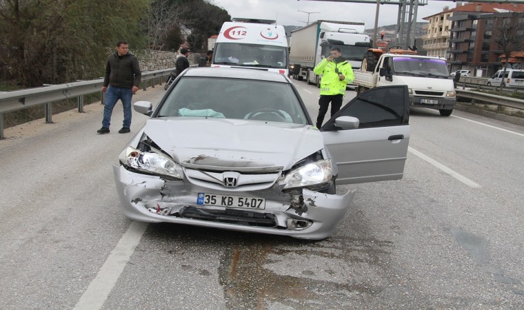 Manisa’nın Kula ilçesinde karayolunda seyir halindeki otomobil, aynı yönde seyreden başka bir otomobile arkadan çarptı. Çarpışmanın şiddetiyle 1 kişi yaralanırken, İzmir-Ankara D300 karayolunun Uşak istikametinde trafik bir süre tek şeritten kontrollü olarak sağlandı.