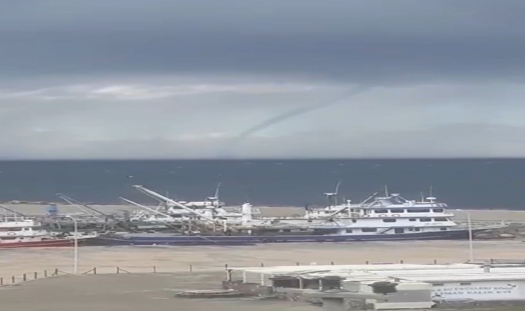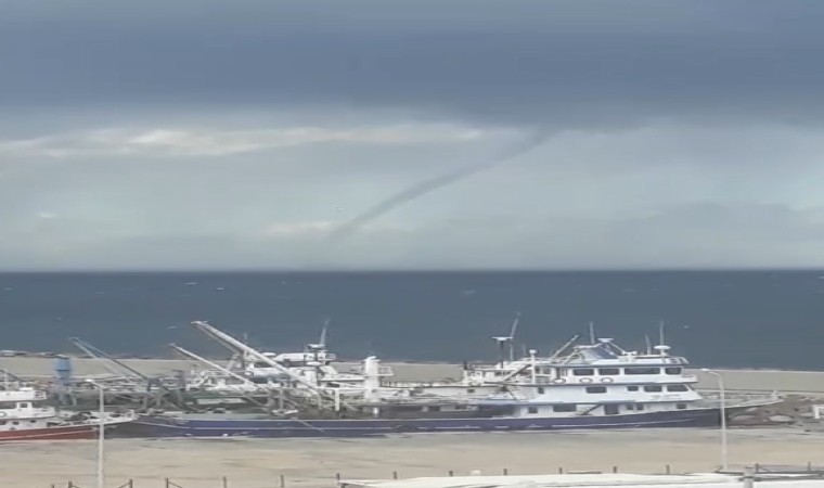 Denizde oluşan dev hortum Babakale Limanında, Gökhan Kuklat tarafından görüntülendi.
