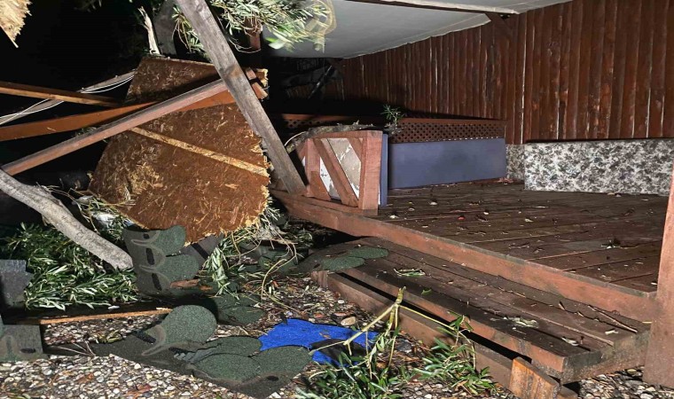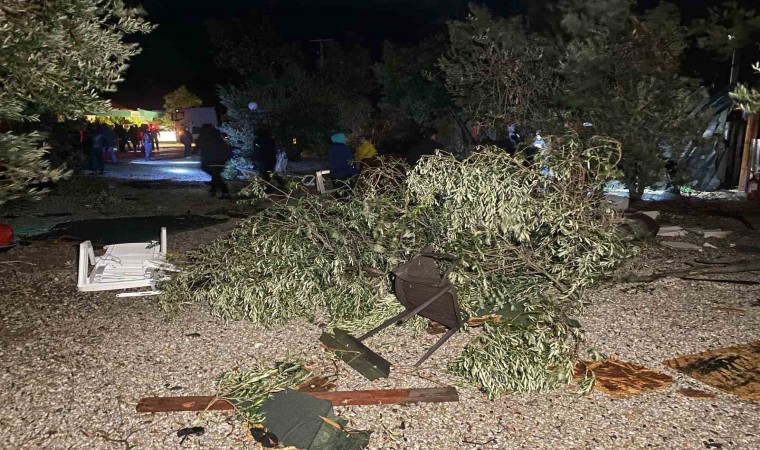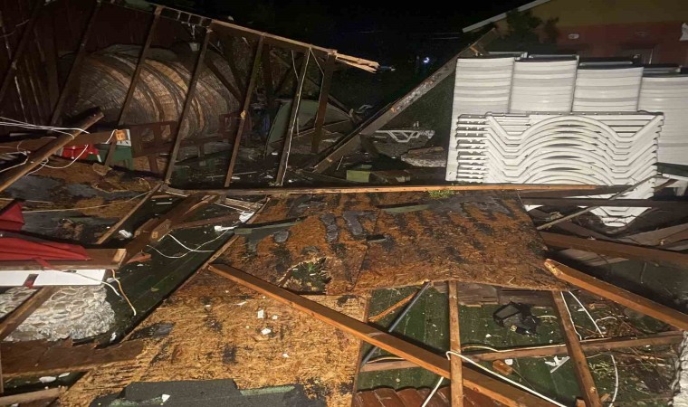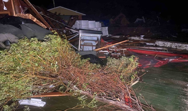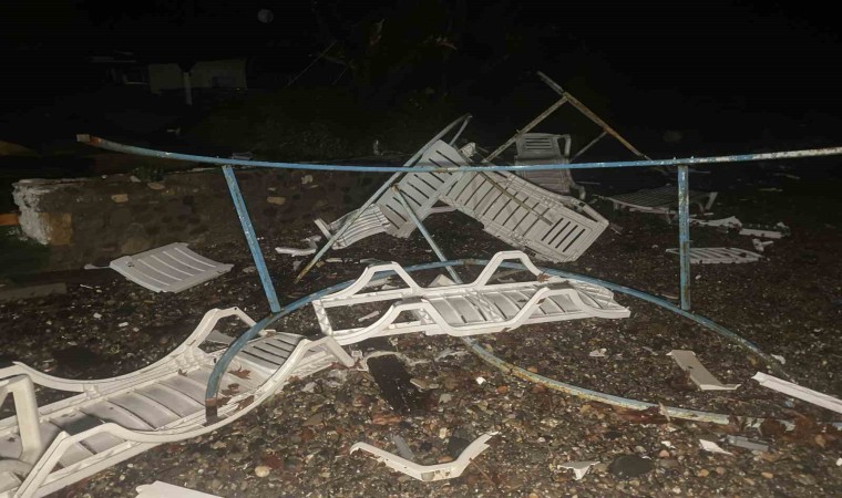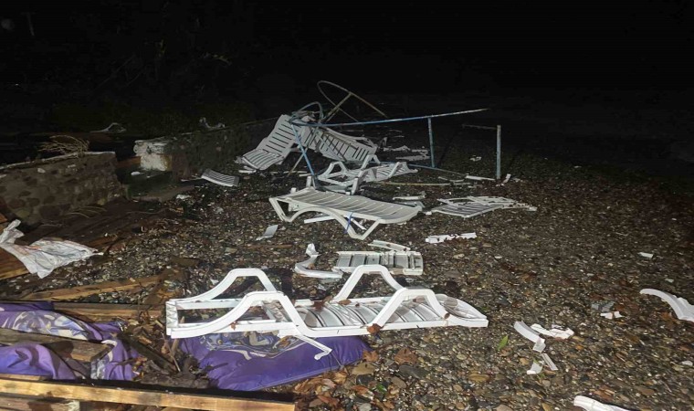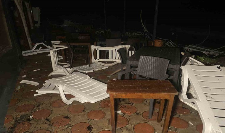 Lodos şeklinde denizin patladığını ve binaya kadar geldiğini belirten işletme sahibi Mehmet Kırbaş, “Bir anda gürültü ve sesi fark ettik. Sahil kesiminde bulunan şezlonglar, masalar, demir sandalyeler çevreye saçıldı. Korkuyla kendimizi bir köşeye attık. Sesin geçmesini bekledik. Uzun sürmedi. Birkaç dakika sürdü. Sonrasında fırtına geçtikten sonra ağaçların yıkıldığını gördük. Çatıları uçurdu. Çardaklar yıkıldı. Yaklaşık 10 mekan zarar gördü. Büyük bir evin çatısını yola atmış. Hortum mu diyelim, başka bir şey mi diyelim ne diyelim bilmiyorum” dedi.