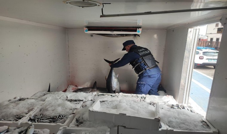 Çanakkale’nin Ayvacık ilçesinde Sahil Güvenlik ekiplerince soğuk hava deposuna sahip bir kamyonette yapılan arama da avlanması yasak 11 orkinos ele geçirildi. 26 bin 242 TL idari para cezası kesildi.