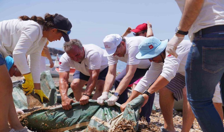 Pınar, Yellice, Taşlıada, Kara ada, Büyük maden, Küçük maden, Güneş adası ve Yumurta Ada’da yapılan temizliğin ardından, plastik, naylon torbalar, cam atıkları, pet şişeler ve mültecilerden geriye kalan 7 adet bot enkazı teknelere alınarak Cunda (Alibey) Adası’na getirildi ve kamyonlara yüklenerek geri dönüşüm yapılmak üzere götürüldü.