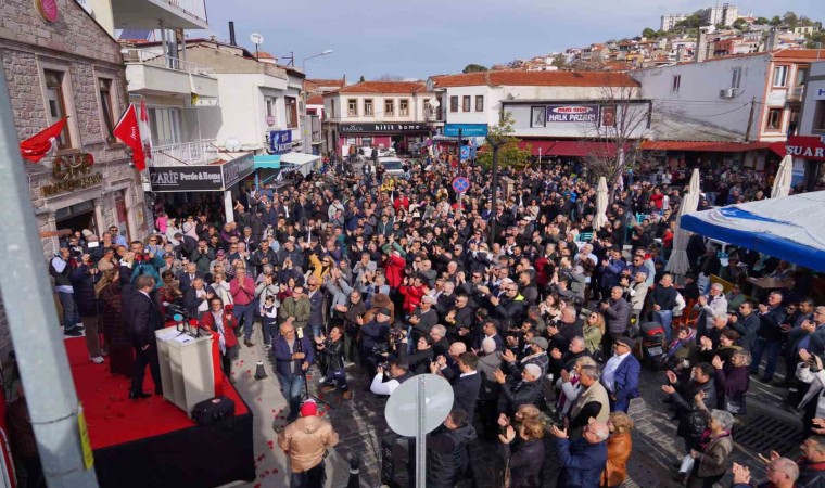 İlçenin tarihi at arabacılar meydanında bulunan CHP Ayvalık İlçe Başkanlık binasına kalabalık bir halk topluluğuyla gelen Başkan Ergin, miting havasında gerçekleşen toplantıda Ayvalıklılara seslendi.