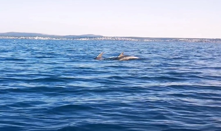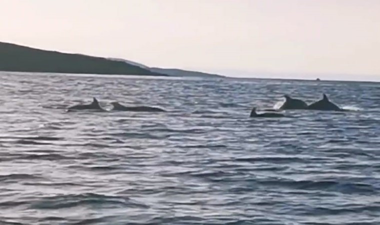 Teknenin etrafında turlar atan ve sık sık su yüzüne sıçrayıp, yeniden denize atlayarak Özlemiş çifti ve teknede bulunan aile dostlarını adeta selamlayan yunus balıklarının sevimli halleri ise cep telefonuyla görüntülendi.