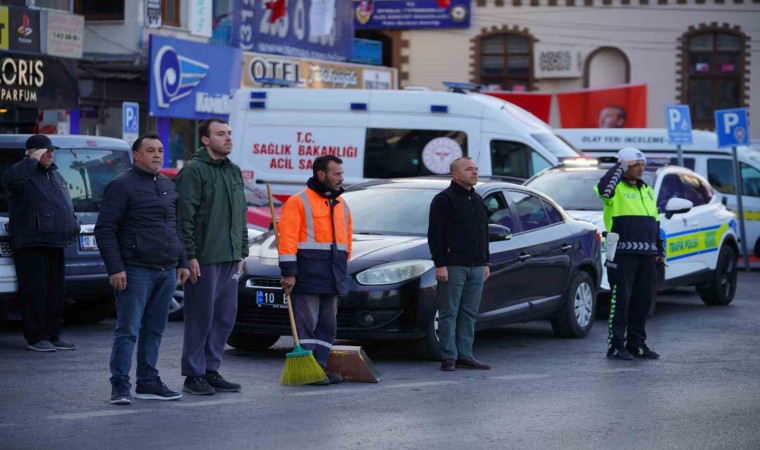 Yüzlerce vatandaşın katıldığı törende, Ayvalık Kaymakamı Hasan Yaman, Ayvalık Belediye Başkanı Mesut Ergin, sivil toplum örgütleri ve siyasi partilerin temsilcileri ve vatandaşlar hazır bulundu. Törene katılanlar Atatürk anıtına çelenk sundu. İki dakikalık saygı duruşu sırasında ilçede hayat akışı adeta durdu. Tören alanının dışında, cadde ve sokaklarda, Atatürk için saygı duruşunda bulunan vatandaşların yaşadıkları hüzün adeta gözlerinden okunuyor gibiydi.