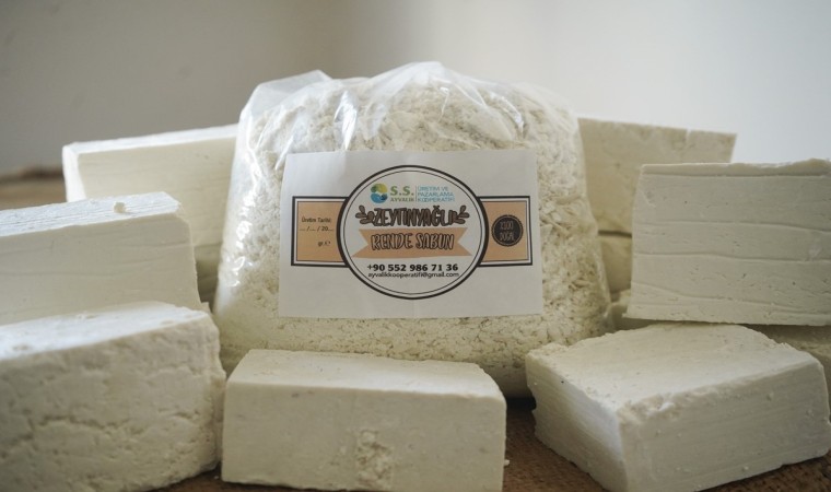 Balıkesir’in Ayvalık ilçesinde; Ayvalık Belediyesi Üretim Ve Pazarlama Kooperatifi’nin Küçükköy’deki üretim mutfağında kurulan sabun atölyesi en doğal sabunları üretiyor.