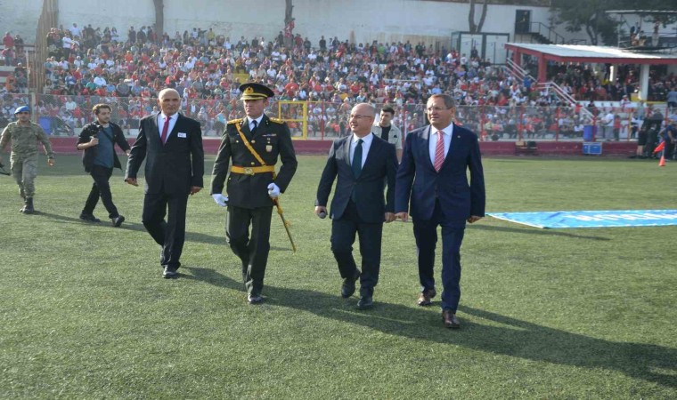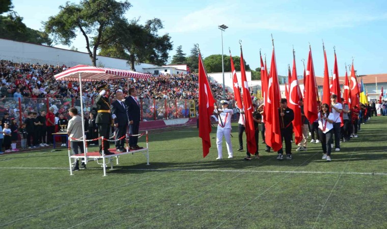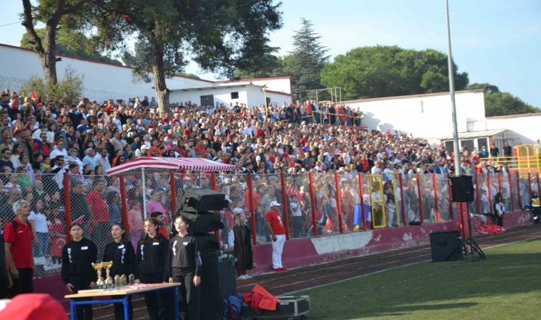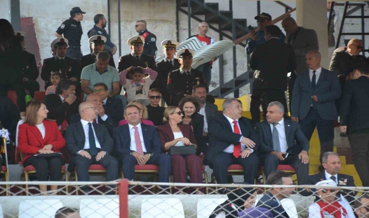 Hüsnü Uğural Stadyumu’nda; Ayvalık Atatürk Lisesi (ATAL) okul idarecileri, öğretmenleri ve öğrenciler tarafından düzenlenen törende; Ayvalık Kaymakamı Hasan Yaman ve Ayvalık Belediye Başkanı Mesut Ergin’in öncülüğündeki protokol üyeleri stadı adeta hınca hınç dolduran vatandaşların Cumhuriyet Bayramı’nı kutladı, büyük coşkuya ortak oldu.