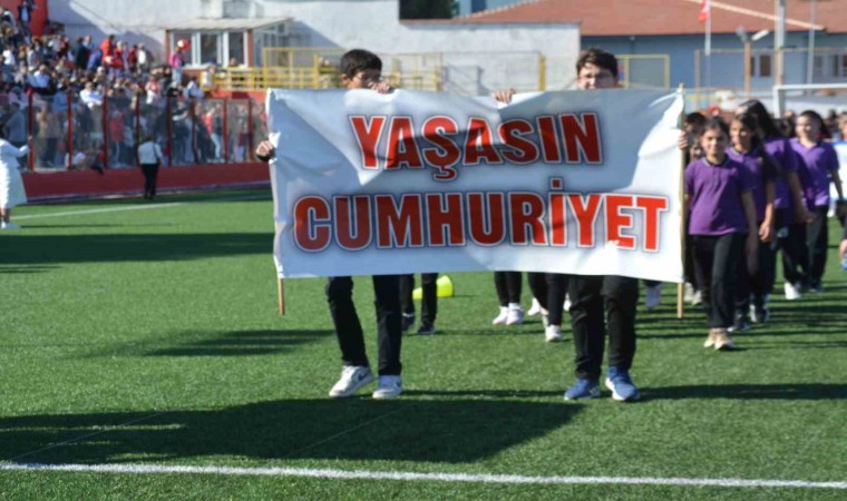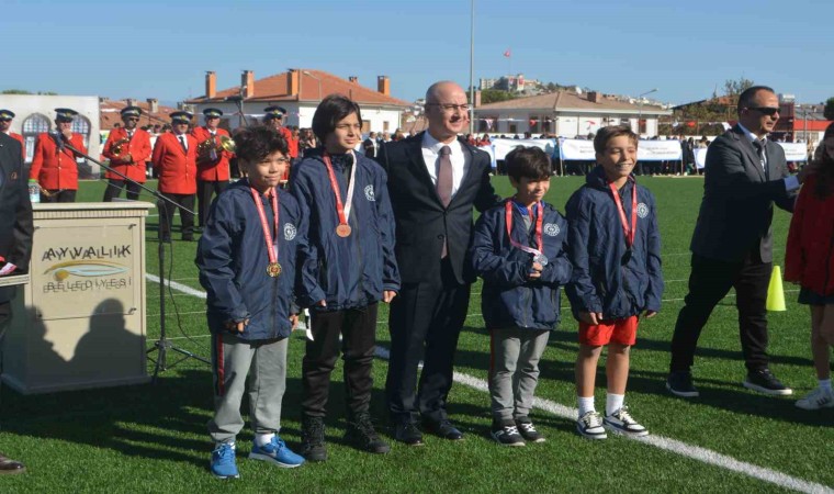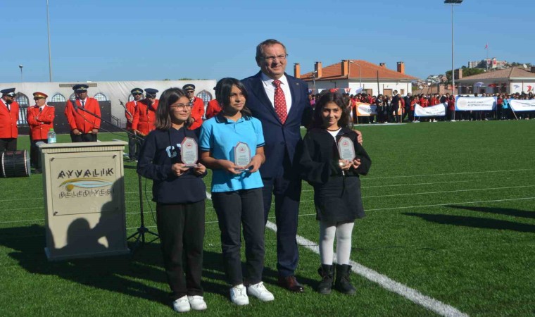 Hüsnü Uğural Stadyumu’nda; Ayvalık Anadolu Lisesi (AYAL) okul idarecileri, öğretmenleri ve öğrenciler tarafından düzenlenen törende; Ayvalık Kaymakamı Hasan Yaman ve Ayvalık Belediye Başkanı Mesut Ergin’in öncülüğündeki protokol üyeleri stadı adeta hınca hınç dolduran vatandaşların Cumhuriyet Bayramı’nı kutladı, büyük coşkuya ortak oldu.