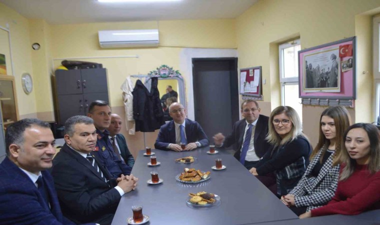 Kaymakam Yaman’ın öncülüğündeki protokol üyeleri karne dağıtımının ardından bir süre okulun öğretmenleriyle de sohbet etmeyi ihmal etmedi.