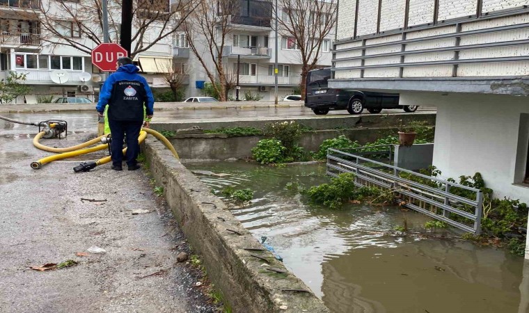 Balkanlar üzerinden gelen şiddetli yağış, Balıkesir’in Ayvalık ilçesinde de hayatı olumsuz yönde etkiledi.