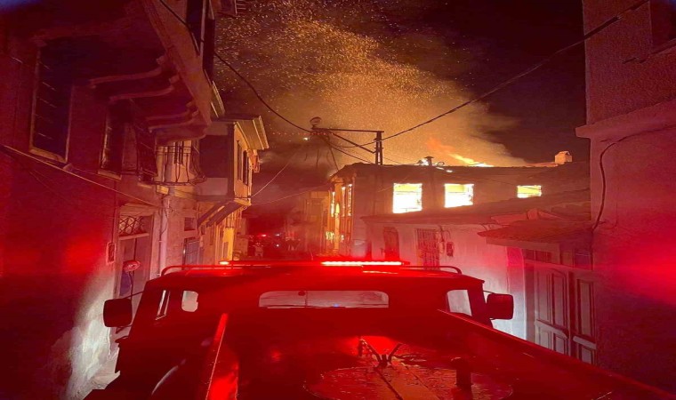 Yangının iki metruk bina ile bitişik durumda olan evlere sıçramasından endişeli olan mahalle sakinleri korku dolu anlar yaşadı.