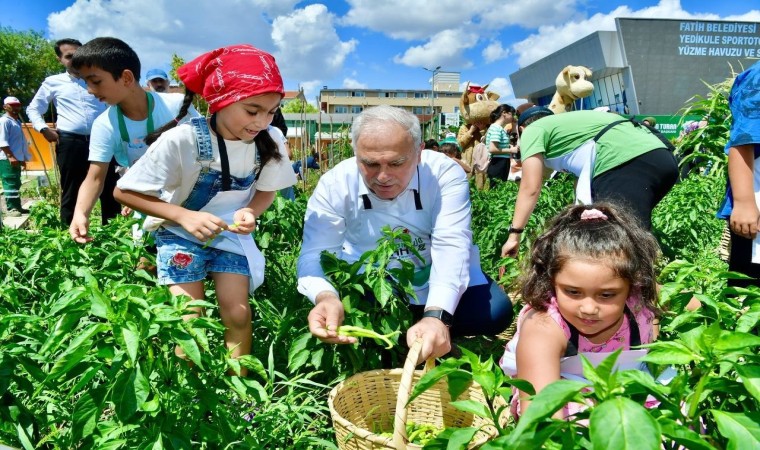 Fatih Belediyesi’nin 2 yıl önce faaliyete soktuğu Ayvansaray ve Yedikule Bahçe’de ilkokul çocukları ektikleri sebze ve meyveleri topladı.