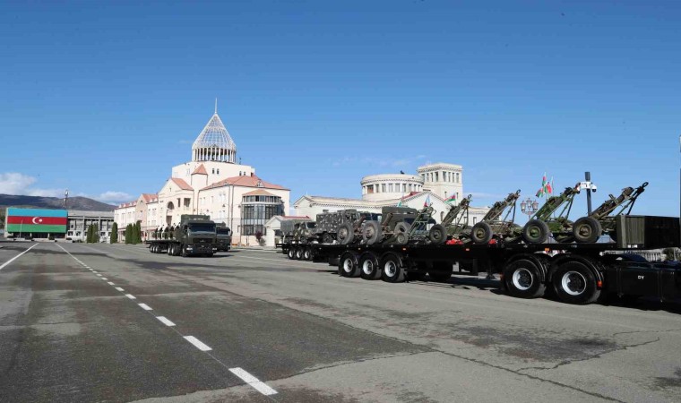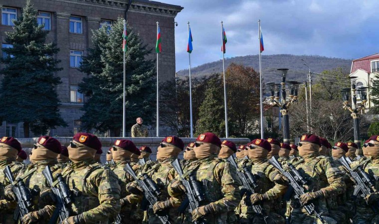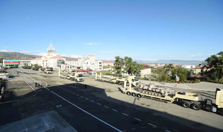 Azerbaycan ordusu, 8 Kasım Zafer Günü kutlamaları çerçevesinde Hankendi’de askeri geçit töreni düzenleyerek gövde gösterisi yaptı.