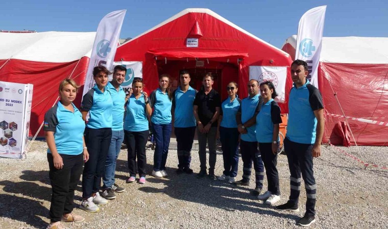 Türkiye-Azerbaycan kardeşliği Çanakkale’de 18-22 Eylül tarihleri arasında gerçekleştirilen MED EU MODEX 2023 Çanakkale Tıbbi Saha Uygulama Tatbikatı’nda da devam ediyor. Tatbikatta, 6 Şubat’ta Kahramanmaraş merkezli 10 ilde büyük yıkıma yol açan deprem sonucu yaşanan kurtarma çalışmalarında yer alan Azerbaycan sağlık ekibi de bulunuyor. Azerbaycan tarafından kurulan sahra hastanesine senaryo gereği getirilen yaralıların müdahaleleri yapılıyor.
