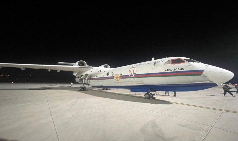 Azerbaycan’ın Türkiye’deki orman yangınlarının söndürülmesine destek vermek amacıyla dün gece gönderdiği BE-200ÇS amfibi uçağı İzmir’e indi.