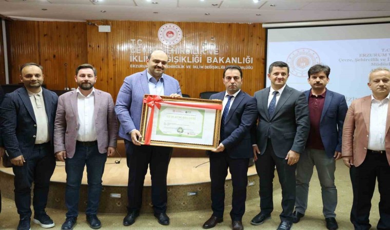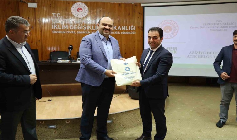 Erzurum Çevre, Şehircilik ve İklim Değişikliği İl Müdürlüğü Konferans Salonu’nda düzenlenen belge teslim törenine İl Müdürü Faruk Çelik, Aziziye Belediye Başkanı Muhammed Cevdet Orhan, Başkan Yardımcısı Kayhan Alpagut, İl Müdürlüğü yöneticileri ile “Sıfır Atık Projesi” kapsamında görev yapan mühendis ve teknik personeller katıldı.