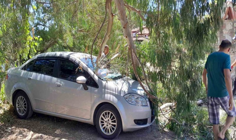 Jandarma, itfaiye ve Ula Belediyesi’ni arayan vatandaş kırılan Okaliptüs dalının kesilmesini ve tutanak tutulmasını istedi. Olay yerine gelen Ula Belediye personeli kesme motoru ile kırılması sonucu aracın üzerine düşen dalı temizlerken dal yerinden koptu ve kaportaya da zarar verdi.