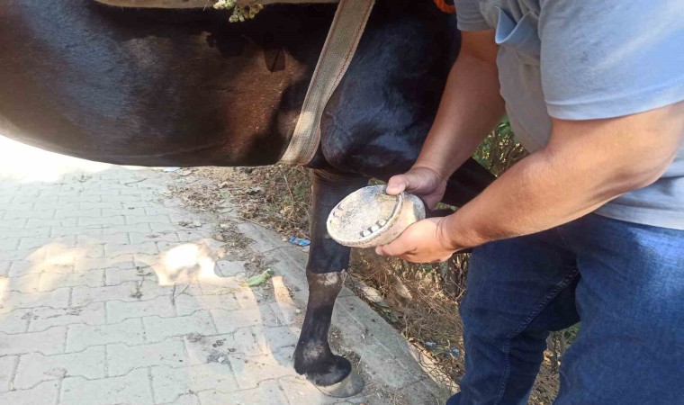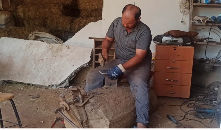Kahramanmaraş’ta nalbant ustası, 20 yıldır baba mesleği olan nalbantlığı sürdürüyor.