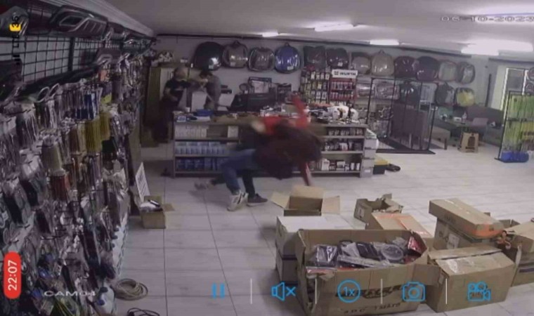 Çorum’un Sungurlu ilçesinde bir iş yerine gelen baba-oğul dehşet saçtı. Sopayla darp edilen iş yeri sahibi daha sonra bıçaklandı, dehşet anları güvenlik kamerasına yansıdı.