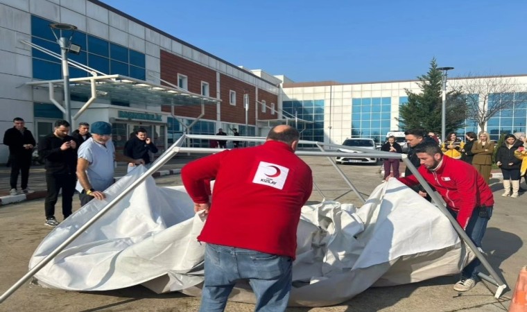 Kırklareli’nin Babaeski ilçesinde bulunan devlet hastanesi personeline, Türk Kızılay personeli tarafından, afet çadırı kurma ve afet müdahale araçlarının tanıtım eğitimi düzenlendi.