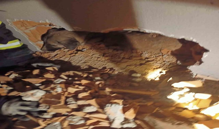 Kırklareli’nin Babaeski ilçesinde iki duvar arasında sıkışıp kalan köpek, itfaiye ekipleri tarafından kurtarıldı.