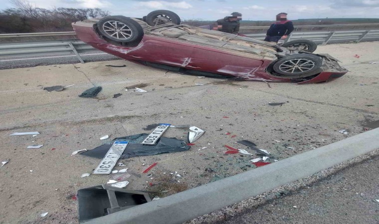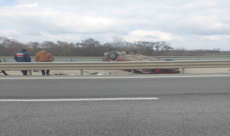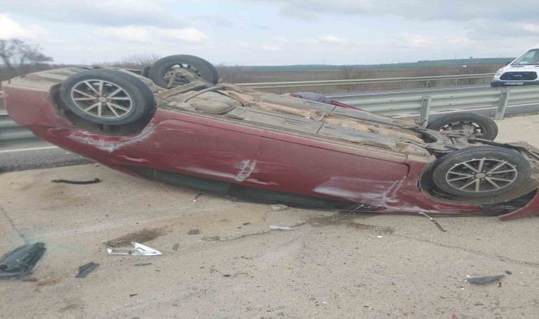 Kırklareli’nin Babaeski ilçesinde meydana gelen trafik kazasında kontrolden çıkan araç ters döndü.