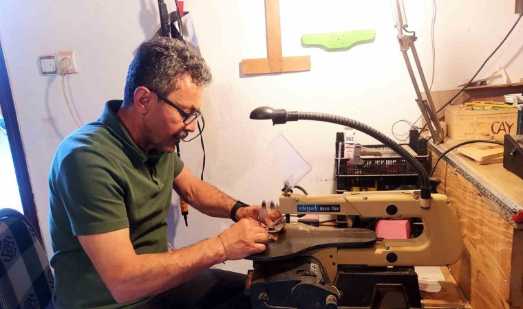 Atölyesini, sanat yapmak isteyenlere açık tutan Doğan, “Hayatımın büyük bir kısmını bu çalışmaya adadım. Kendi yaptığım bu dokuz metrekarelik alan içerisindeki çalışmaları sergiledim. Yaklaşık olarak dağıttıklarım hediye ettiklerimle birlikte şu ana kadar 1000’e yakın eser yapmış olduğumu tahmin ediyorum. Bunların yanında ahşaptan yüzük, kolye bunları da yaptım. Eşe dosta hediye ediyoruz. İçinde ukdesi olup da böyle bir ortamda çalışmak isterim diyen herkesi bekliyorum. Bir insanın elinden tutmuş olalım bir insanın hayatına dokunmuş olalım. İsteyen herkes gönül rahatlığıyla çalışabilir” diye konuştu.
