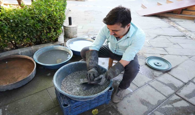 Babasının da kalaylama işlemini bir Yahudi ustadan öğrendiğini anlatan Mustafa Kasapkara, ilk oğlunun doğduğu yıl Antalya’ya yerleştiklerini dile getirdi. Kasapkara, “Askere gidene 11-12 sene Kahramanmaraş’ta babamın yanında çalıştım, sanatı öğrendim. Askere gittim geldim, tekrar babamın yanında devam ettim. Babam bir Yahudi ustanın yanında çalışarak öğrenmiş. İki oğlum var ben de oğullarımı bu mesleği devam ettirmeleri için yetiştirdim. Antalya’ya 1990 yılında geldim, yaklaşık 35 yıl oldu. Demirciler ve Sobacılar Çarşısı’nda faaliyete başladım. Uzun yıllardır da burada bu faaliyeti göstermekteyiz. İnsanlar kendi evinde kullanmış olduğu mutfak eşyalarını bakıma getiriyorlar, bunlara işlem yapıyoruz. Onun haricinde otellerin restoranlarına işler yapıyoruz. Servis tabakları hazırlıyor, özel çalışmalar gerçekleştiriyoruz. Mesela bir mimar geliyor, projesini gösteriyor. “Şu villada veya şu otelde, böyle bir şey yapmak istiyorum” diyor. Biz de yaparız diyoruz. Tabii şaşkınlıkla karşılamasıyla birlikte de yapacağımızda da inanıyor, güveniyor ve yapıyoruz. Hiç olmayan bir şeyi bir proje aşamasından alıyoruz, uygulamaya geçiriyoruz. Bittikten sonra da mutlu oluyoruz” dedi.