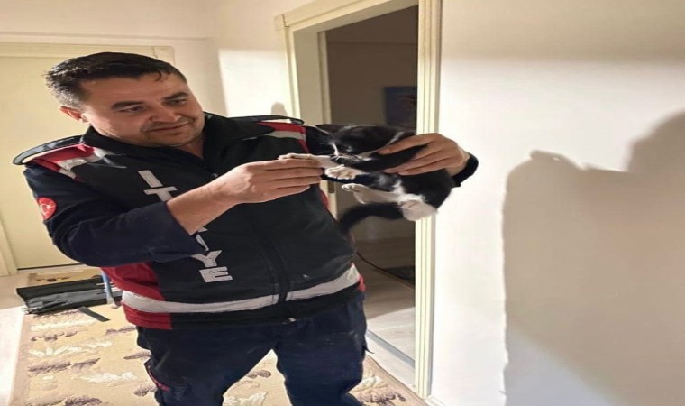Çankırı’da bir apartmanın baca deliğine düşen kedi, itfaiye ekiplerince kurtarıldı.