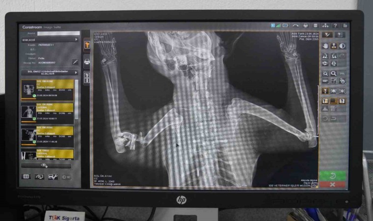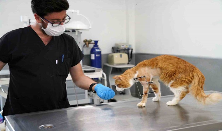 Ameliyat hakkında bilgi veren Veteriner Hekim Mehmet Uysal, ortopedi biriminde kedinin bacağının durumunu tespit ettiklerini belirterek, “Bacağının ciddi şekilde parçalandığını gördük. Burada sağlığına kavuşması için hemen gerekli cerrahi tedaviyi uyguladık. Bacağında parçalanan kemikleri özel bir aparatla sabitledik. Güvenli bir yöntem olduğu için bunu tercih ettik. Kedimiz 25 gündür bu şekilde tedavi altında. Bir süre sonra bu taktığımız aparatın kırıklar üzerindeki etkisine bakacağız. Bacak iyileşmiş olursa çıkaracağız. Şu anda sağlığı ile alakalı bir problemi yok. Keyfi yerinde. Bacağını nasıl kullanacağını öğreniyor diyebilirim” diye konuştu.