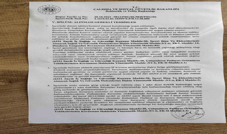Yapılan incelemelerde fabrikalarda ‘iş yerinde duman tahliye/kontrol sistemi kurulmadığı’, toz temizliğinin süpürge ile basınçlı havayla yapılması ve denetimlerin yapılmadığı’, ‘elektrik panolarının IP koruma seviyelerine ilişkin belgelerin görülmemesi’ ve ‘iş yerinde tozlu ortama girip çıktığı tespit edilmiş 1 adet dizel forklift bulunduğu’ gerekçesiyle 6331 Sayılı İş Sağlığı Ve Güvenliği Kanunu Madde 30: İş Yeri Bina ve Eklentilerinde Alınacak Sağlık ve Güvenlik Önlemlerine İlişkin maddeleirne göre cezai işlem uygulandı. Yazılan sonucu Eskipazar’da faaliyet gösteren bir kereste fabrikasına 224 bin 684 TL, Yenice’de faaliyet gösteren 2 ayrı kereste fabrikalarının birine 46 bin 528, diğerine ise 34 bin 896 TL olmak üzere toplam 306 bin 108 TL idari para cezası kesildi.