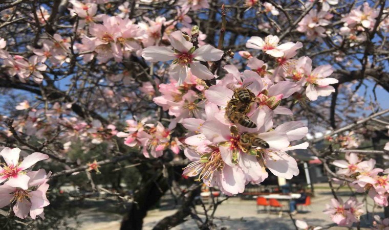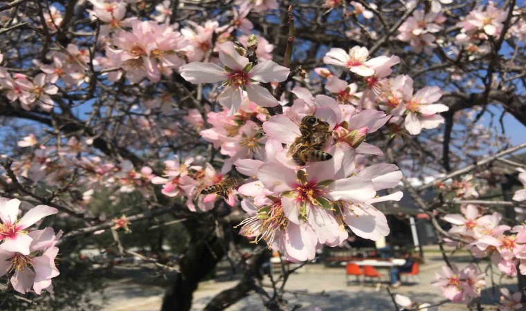 Havaların güzel gitmesi nedeniyle Aydın’ın Efeler ilçesinde bulunan badem ağaçlarının çiçek açmasıyla birlikte bal arıları kovanlarından çıkıp çalışmaya başladı.