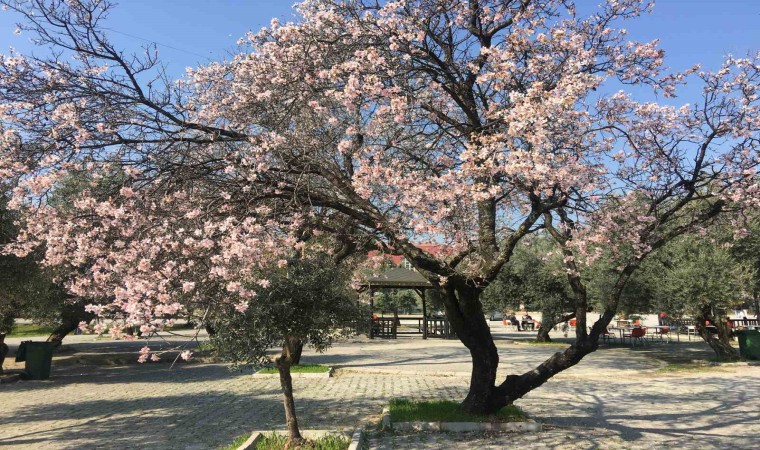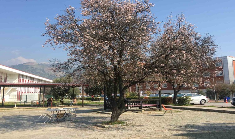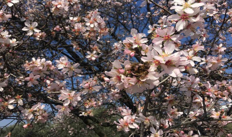 Aydın’da hava sıcaklıklarının artması ile birlikte Aydın’da üniversite kampüsü içerisinde bulunan badem ağaçları çiçek açtı. Kampüste rengarenk görüntüler oluştu. Öğrenciler badem çiçeği kokuları içerisinde kampüste vakit geçirirken, doğanı güzelliği görenleri mest etti. Sıcak havayla birlikte kovanlarından çıkan bal arıları ise açan badem çiçeklerine konup çalışmaya başladı. Badem ağacının üzerine arılar üşüştü. Açan çiçeklerden bal toplamaya başladı.