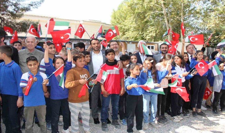Yardım törenine katılan BAE Ankara Büyükelçisi Saeed Thani Hareb Al Dhaheri’ye okul yöneticileri tarafından teşekkür plaketi verildi. Saeed Thani Hareb Al Dhaheri, Türkiye ile Birleşik Arap Emirlikleri’nin ilişkilerinin gelişmesiyle ilgili olarak, “Birleşik Arap Emirlikleri, devletleri için en önemli unsur insandır, bizim için buradaki çocukların sevinci gülümsemesi çok önemlidir. Çünkü ülkelerimizin geleceğini temsil eder. Biz de hep yanınızdayız, sizi unutmayacağız. Evet 2021’den beri bu yana Birleşik Arap Emirlikleri Devlet Başkanının ziyaretinden sonra gerçekten Türkiye ile Birleşik Arap Emirlikleri devleti arasındaki ilişkiler en üst seviyeye ulaştı. Ondan sonra da Cumhurbaşkanı Recep Tayyip Erdoğan 3-4 defa ziyarete gitti. Her iki ülkenin yöneticilerin ilişkileri en üst seviyeye çıkartma yönündeki görüşleri çerçevesinde gidiyoruz. Gerçekten bayağı büyük adımlar atıldı. Biz şunu da unutmayalım, bizim devletimizin kurucusu Şeyh Zayed bin Sultan Al Nahayan onun bize bıraktığı emanet ve ülkelerin kardeşliği emanetini muhafaza etmeye çalışıyoruz. İki ülkenin idaresinin görüşleri çerçevesinde son 2 yılda bayağı projeler geliştiriliyor. Bayağı ilişkiler en üst seviyeyi alınıyor. Birleşik Arap Emirlikleri’nin ilk günden beri verdikleri talimatının üzerinden çerçevesinde giderek Türkiye ve Birleşik Arap Emirlikleri’nin arasındaki ilişkileri en üst seviyeye veya kardeşlik bağlantısını daha çok güçlendirmek için biz şimdi buradayız. Aslında burada şunu demek için geldik, ey Adıyamanlılar, öğrenciler biz sizi unutmayacağız, hep yanınızdayız. Bugün Adıyaman’da da bir tur attık. Gerçekten hasar oranı bayağı büyük, onun için Adıyaman’ı seçtik” dedi.