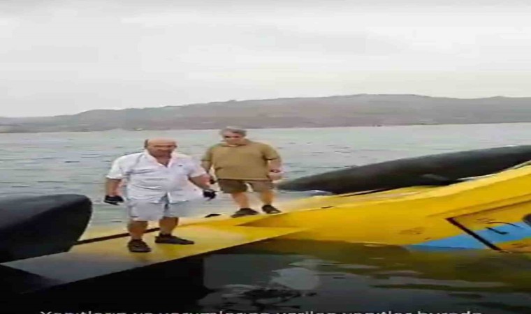 Aydın Didim ilçesindeki yangına müdahale etmek için Bafa Gölü’nden su alırken bilinmeyen nedenle kırıma uğrayan Türk Hava Kurumu’na ait CL-125 tipi yangın söndürme uçağında bulunan personelin kurtarılma anlarına ait görüntüleri ortaya çıktı.