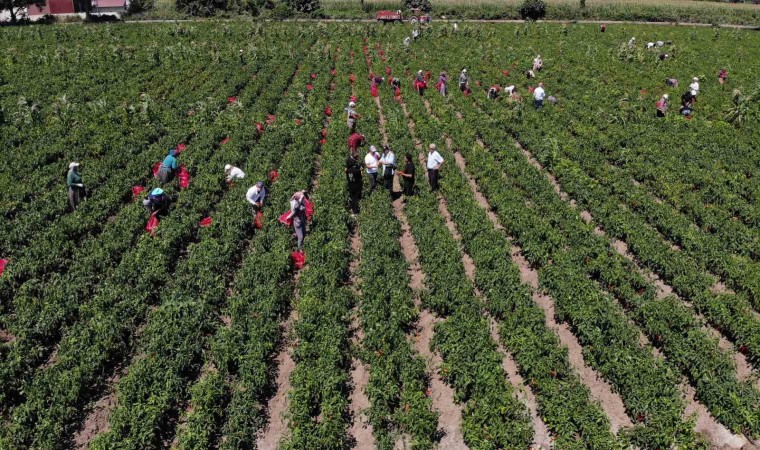 Samsun’un Bafra Ovası’nda yetiştirilen ve yüzde 70 salça verimi olan kapya biberde hasat başladı.