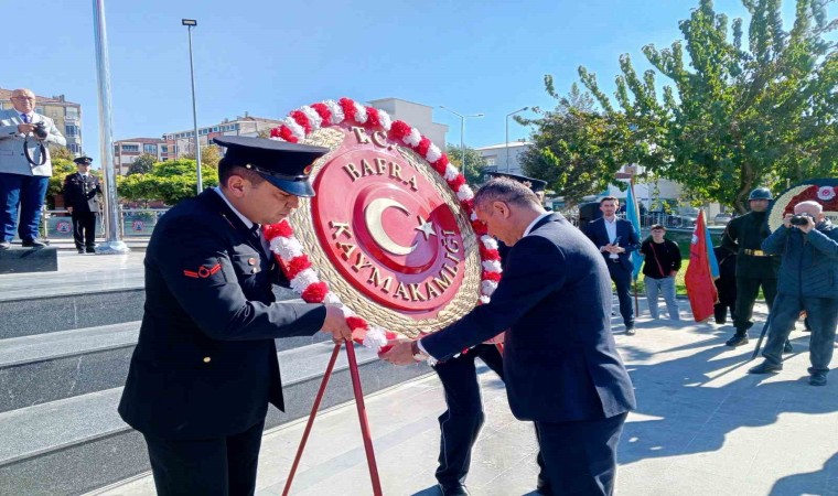 15 Temmuz Demokrasi Meydanı’nda ise saygı duruşu yapılması ve İstiklal Marşı’nın okunmasının ardından Kaymakam Dr. Mustafa Altınpınar, Garnizon Komutanı Piyade Albay Evren Esin ile Belediye Başkanı Hamit Kılıç tarafından Atatürk Anıtı’na çelenk bırakıldı.
