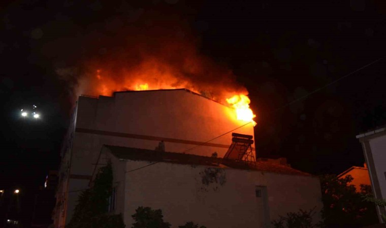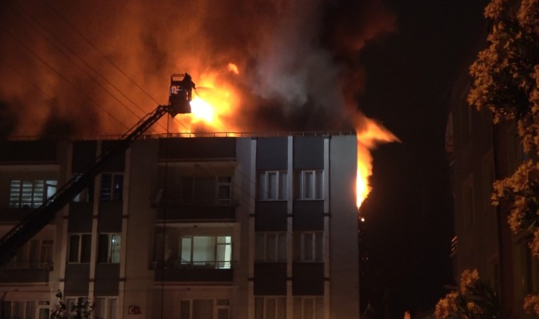 Samsun’un Bafra ilçesinde 6 katlı binanın çatı katında bulunan daire alevlere teslim oldu.