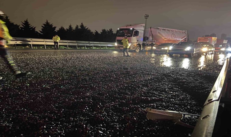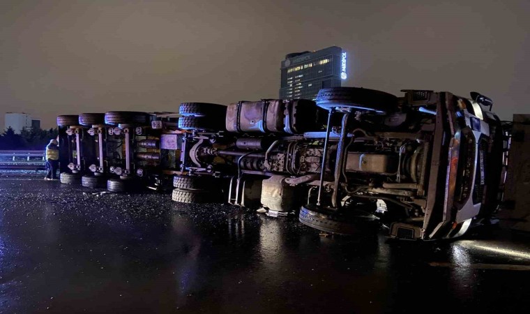 Kaza, saat 02.30 sıralarında Bağcılar TEM Otoyolu Edirne istikametinde meydana geldi. Edinilen bilgiye göre, otoyolda seyir halinde olan 34 DPK 121 plakalı hafriyat kamyonu şoförü Onur Şahin, aracın direksiyon hakimiyetini kaybederek demir bariyerlere çarptı. Çarpmanın etkisiyle mıcır yüklü hafriyat kamyonu yan yattı. Yan yatan hafriyat kamyonundaki mıcırlar yolun her iki tarafına saçılırken şoför Onur Şahin yara almadan kazadan kurtuldu. İhbar üzerine olay yerine polis ve itfaiye ekipleri sevk edildi. Olay yerine gelen polis ekipleri, mıcır dökülen her iki yola duba koyarak trafiği durdurdu.