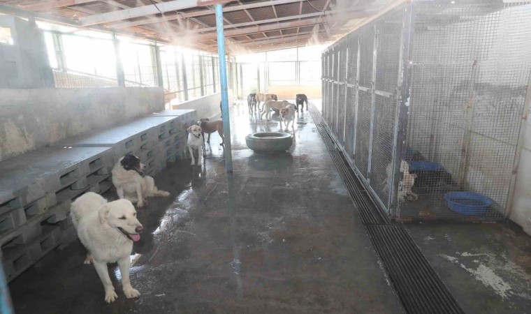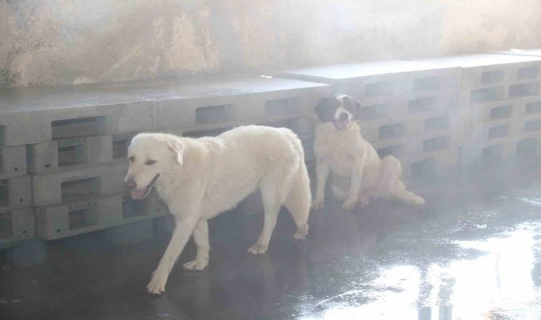 Bağcılar Belediyesi’ne ait Hayvan Barınma ve Müşahade Merkezi’nde kedi ve köpekler, sıcaklığın 36 dereceyi aştığı bu günlerde buharla serinletiliyor.