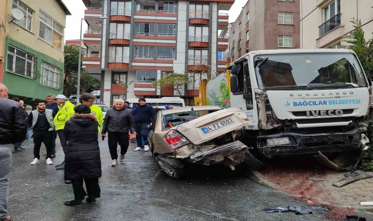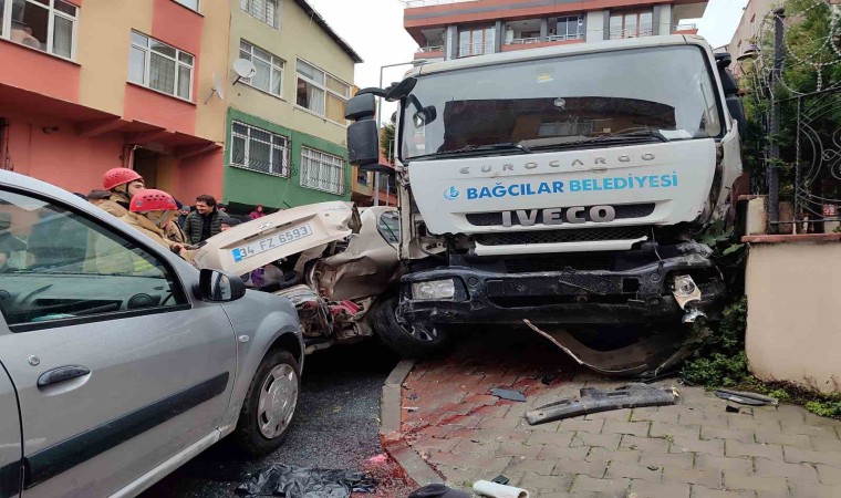 Bağcılar’da seyir halindeki bir çöp kamyonu freni boşalınca park halindeki 7 araca çarptı. Kaza sırasında çöp kamyonundan atlayıp yaralanan şoför, ambulansla hastaneye kaldırıldı.