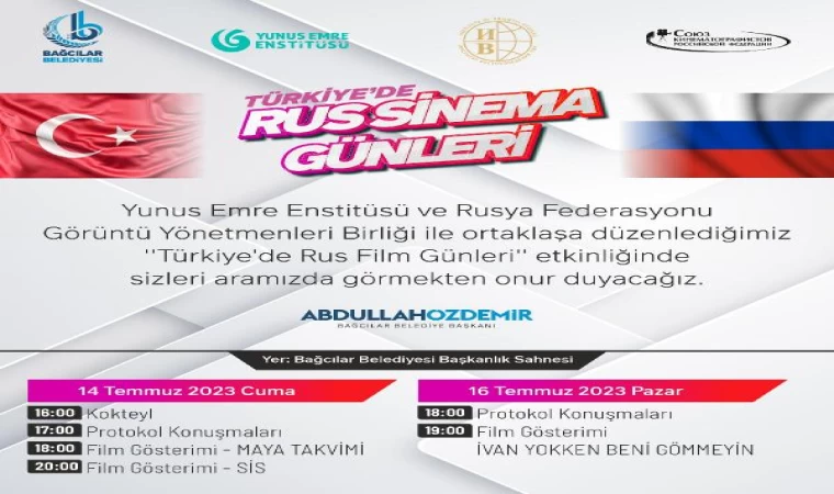 İSTANBUL, (DHA)- Bağcılar Belediyesi, Yunus Emre Enstitüsü ve Rusya Federasyonu Görüntü Yönetmenleri ile birlikte 13 Temmuz - 17 Temmuz tarihleri arasında Rus Film Günleri etkinliğine ev sahipliği yapacak.