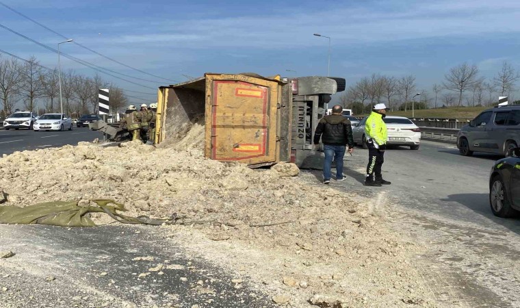 Kaza, saat 15.00 sıralarında Bağcılar Mahmutbey Yolu Habipler istikametinde meydana geldi. Edinilen bilgiye göre, Habipler istikametine giden Mehmet Rauf Yaman idaresindeki 34 EOH 048 plakalı toprak yüklü hafriyat kamyonu, kontrolden çıktı. Sürücünün hakimiyetinden çıkan kamyon, devrilerek yan yatarken, dorsesinde bulunan toprak yola döküldü. Kazada sürücü Yaman yaralandı. Kazayı gören çevredeki vatandaşların müdahalesiyle sürücü sıkıştığı yerden kurtarılırken, olay yerine sağlık, itfaiye ve polis ekipleri sevk edildi. Olay yerine gelen polis çevrede güvenlik önlemi alırken, sağlık ekipleri yaralıyı ilk müdahalenin ardından Bağcılar Eğitim ve Araştırma Hastanesi’ne kaldırdı. Hayati tehlikesi bulunmayan sürücünün tedavisi sürerken toprağın döküldüğü yolda trafik tek şeritten sağlandı. Kamyonun kaldırma çalışması ise sürüyor.