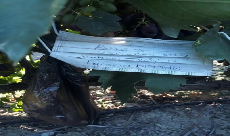 Okan ÇALIŞKAN/TARSUS (Mersin), (DHA)- MERSİN’de pikniğe giderken yolda gördükleri bağdan salkım üzüm koparan piknikçiler, tarla sahibine poşet içerisinde para bıraktı.