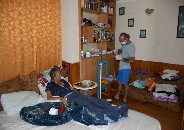AYDIN’IN KUŞADASI İLÇESİNDE, 1 YIL ÖNCE YAKALANDIĞI KOLON KANSERİ NEDENİYLE BAĞIRSAKLARI DIŞARI ALINARAK KOLOSTOMİ TORBASINA YERLEŞTİRİLEN ROMANYA ASILLI TÜRK VATANDAŞI VARVARA LAURA MACOVEİ NİSTOR (51), HAYATA TUTUNMA MÜCADELESİ VERİYOR.