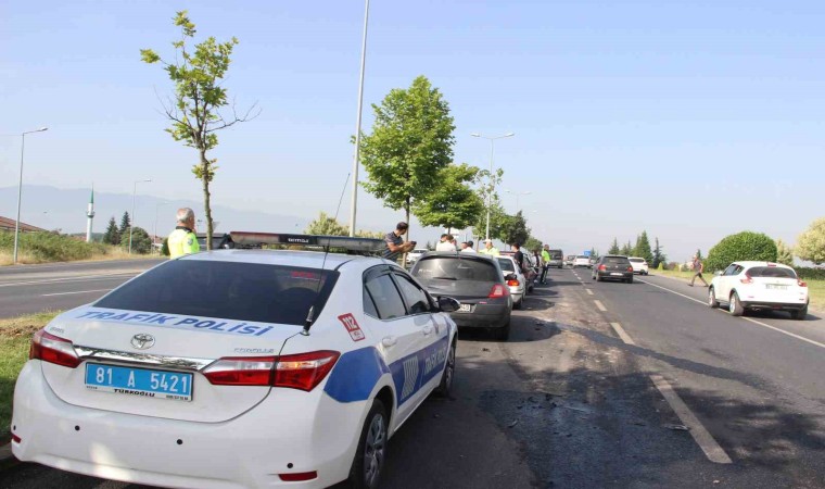 DÜZCE (İHA) – Düzce merkez Bahçeşehir bağlantı yolunda meydana gelen zincirleme trafik kazasında 5 araç birbirine girdi. Kazada şans eseri yaralanan olmadı.